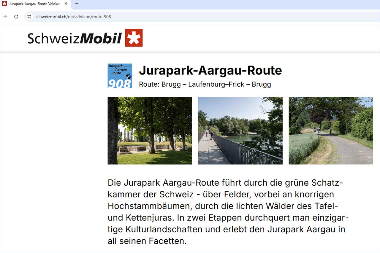 Die Veloroute 908 führt von Brugg nach Frick und zurück.